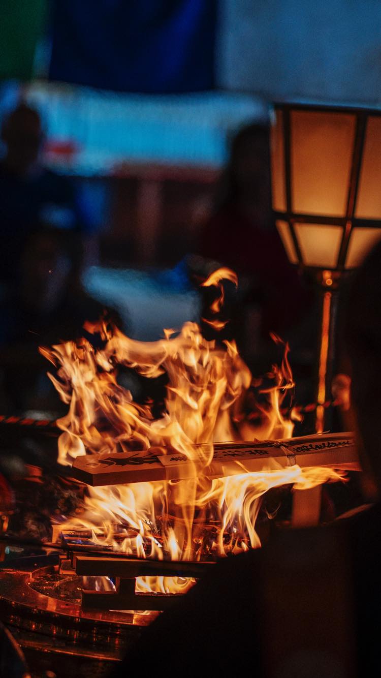 その願いは読み上げられ、炎の中へ──その瞬間、火は願いを乗せて仏様に届けられ、祈りそのものとなるのです。