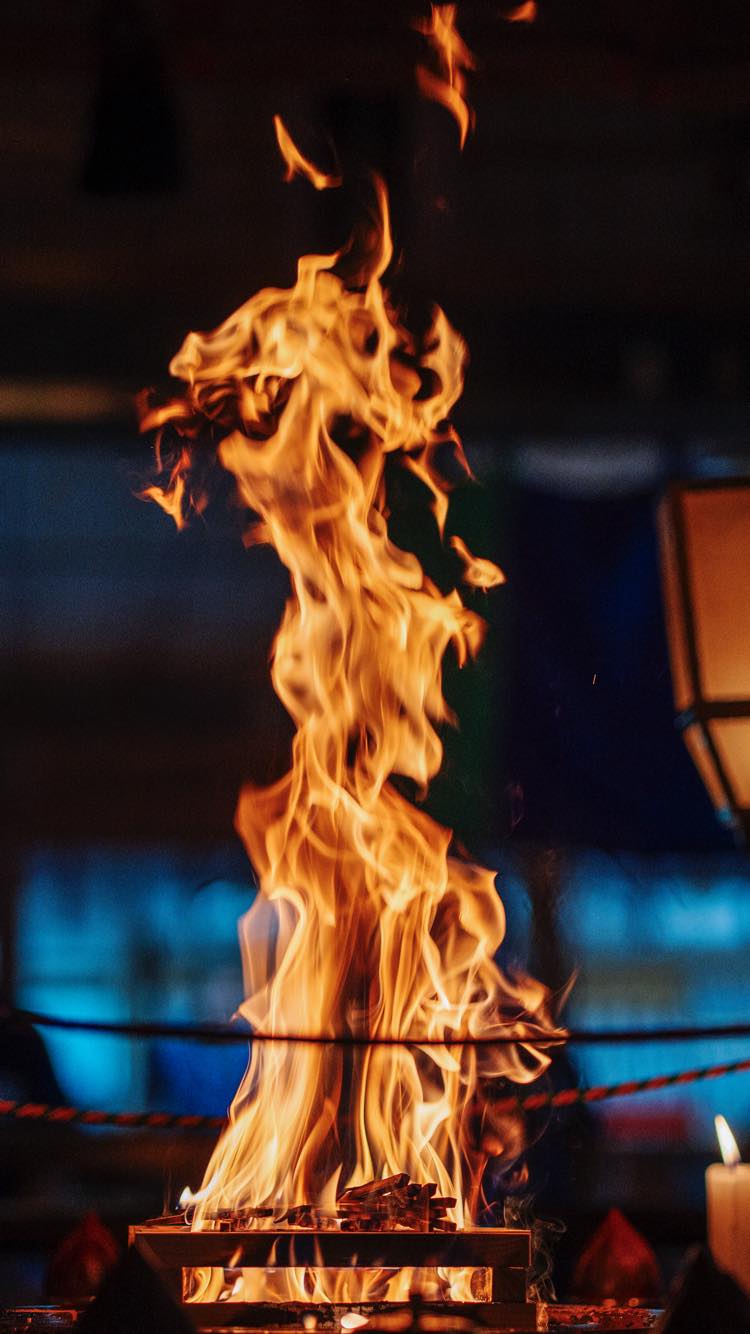 仏の智慧そのものであり、煩悩や迷いを焼き尽くし、自らの祈りを仏様に届けるための、神聖な炎です。