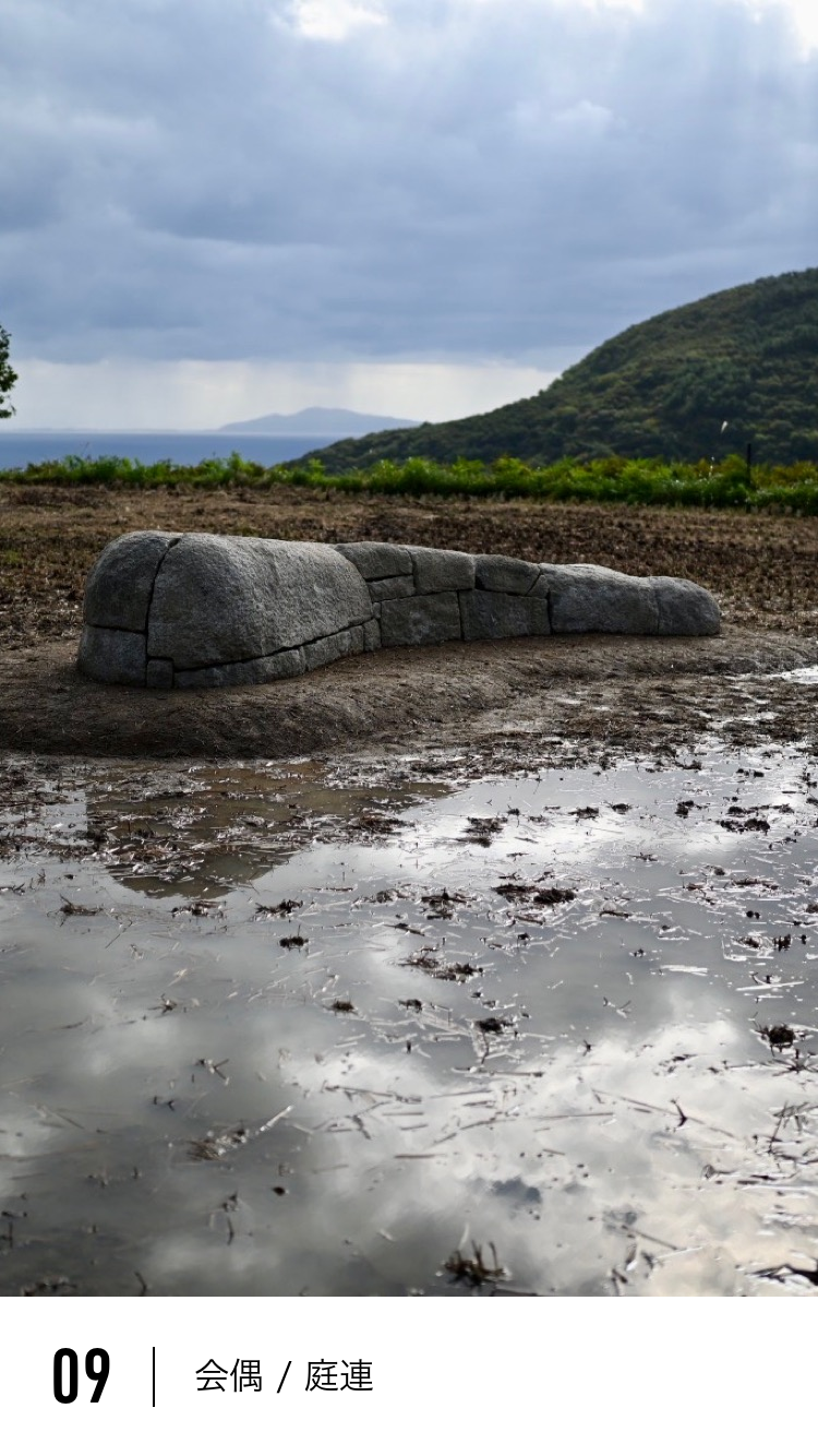 あなたはふと自分を見守ってくれているかのようなお地蔵さんを目にしたことはありませんか? この作品はそんなお地蔵さんのような存在になることを目指してつくられ、岩首の棚田を見守っています。後継者不足に悩まされている棚田ですが、たとえ、田んぼをする人がいなくなっても、ただの荒地にしたくない。そんな農家の想いと作者の想いが、この作品によってつながったといいます。