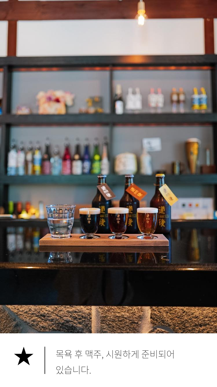 탕에서 나오면, 어쩐지 마음의 고삐가 풀려 버린다. 거기에다 맥주라니, 더는 버틸 수 있겠는가. 문명이란 참으로 죄 깊은 것이다. 나는 나쓰메 긴노스케, 세상은 ‘소세키’라 부르고 있다만, 뭐 그런 건 중요치 않다. 오늘은 도고 온천 후에 마시기 좋은 맥주를 소개하고자, 글을——아니, 목소리를 기록하게 되었다. 온천에서 나와, 피부에 아직 김이 맴도는 이 순간. 손에 들어주었으면 하는 것이 바로 이 도고 맥주다. 황금, 호박빛, 그리고 칠흑 같은 색. 삼색의 맥주를 앞에 두고, 당신이라면 무엇을 고르겠는가. 시음은 가벼운 것에서 무거운 것 순으로. 이것이 철칙이다. 점차 무게를 더해가며 마시면, 혀끝의 감촉, 목 넘김, 단맛과 쌉싸름함까지 더욱 또렷하게 살아난다.