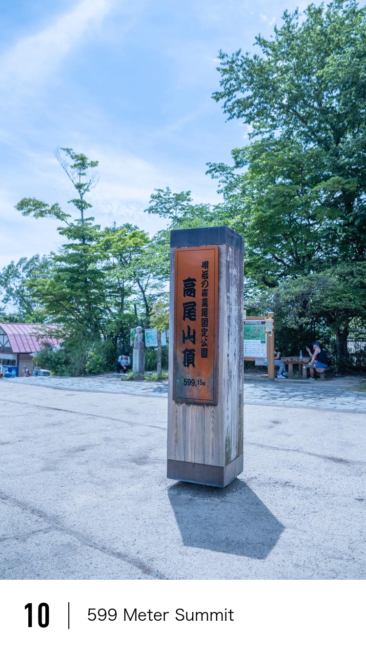 Welcome to the summit of Mount Takao, standing at an altitude of 599 meters.
