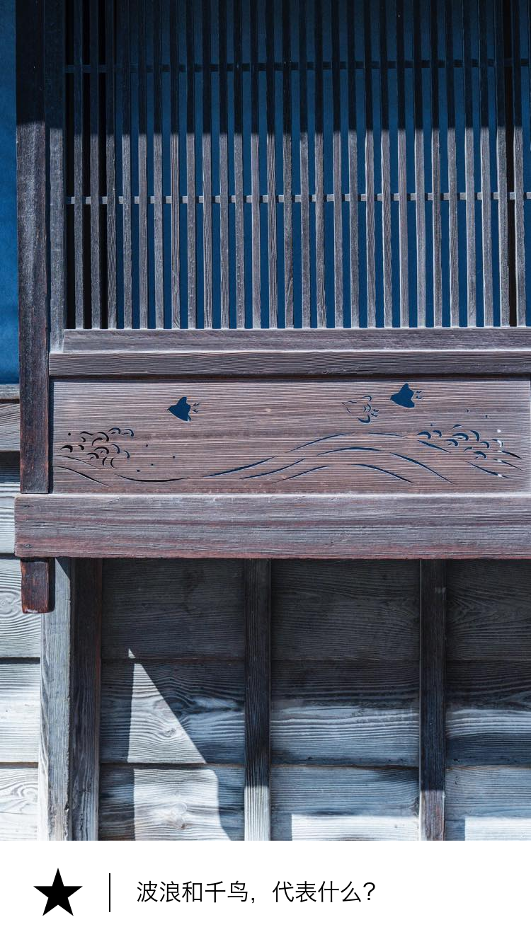千鸟象征着婚姻美满、家庭平安,与波浪的结合表达了对小镇居民幸福安康的祝福。