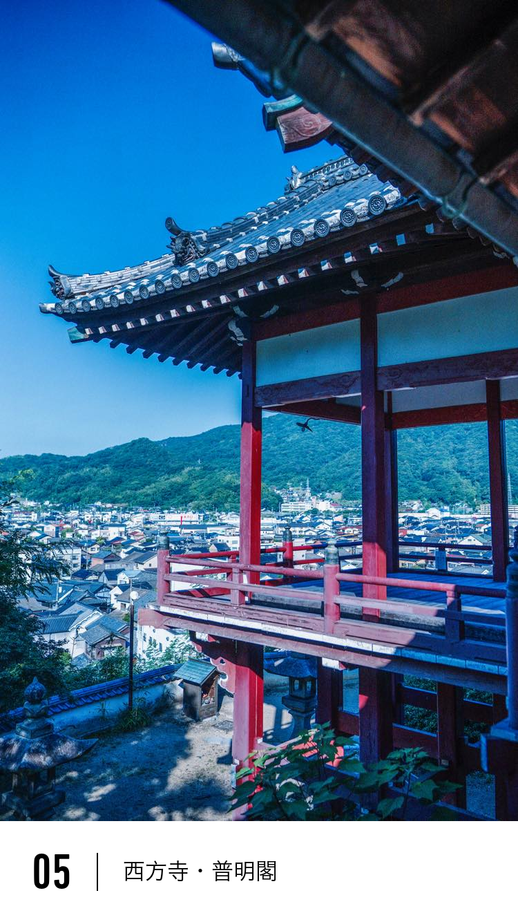 說到西方寺,它原本位於其他地方,但原有的寺廟被大火燒毀後遷到了此地。之後,在江戶時代中期,增建了普明閣。依山而建的外觀,與京都的清水寺頗為相似。