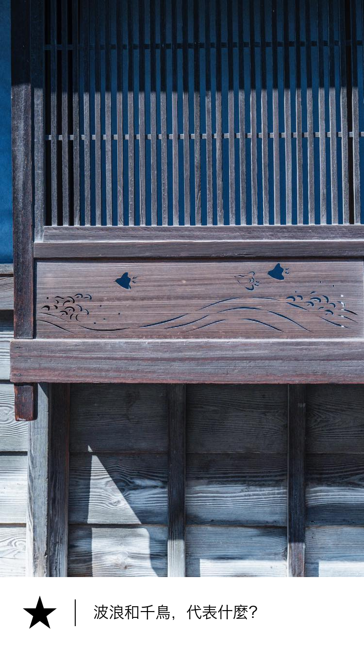 千鳥象徵著婚姻美滿、家庭平安,與波浪的結合表達了對小鎮居民幸福安康的祝福。