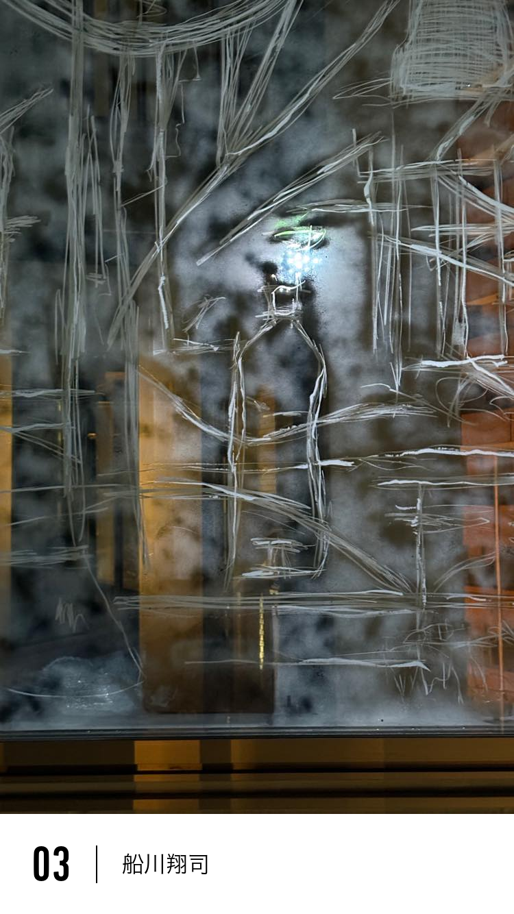 今回の作品は、僕の制作が気象をテーマにして、環境を取り込むっていうことがもともとあるんですけど、BnAの建築の特徴自体が環境の特性になっていると思っていて。で、そこを鑑賞者が通り過ぎたり、ガラス窓を眺めたりすることの中で、作品がある場所を内と外とかを分けずに、通り過ぎていく時間の中で経験することを鑑賞の主な経験にできたらなというふうに思ったというところがあります。