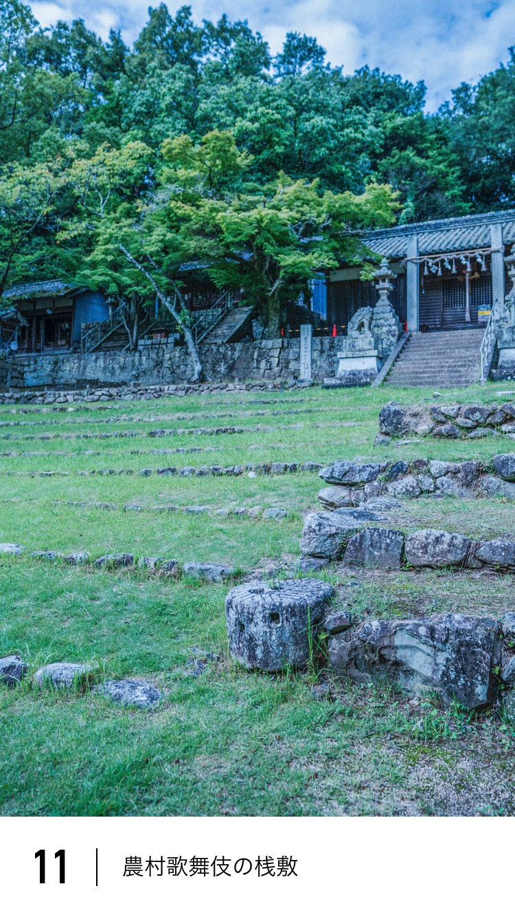 肥土山集落の隣には、もうひとつ島内に残った中山農村歌舞伎舞台があり、そこには「千枚田」と呼ばれる棚田も広がります。限られた土地を石で積み上げて田畑を拓いた人々の知恵。その技術と誇りは、歌舞伎の舞台と同じく石に支えられてきました。豊作を祈り、収穫に感謝して捧げられる農村歌舞伎。その背景には、石とともに歩んできた島の暮らしが、今も静かに息づいているのです。