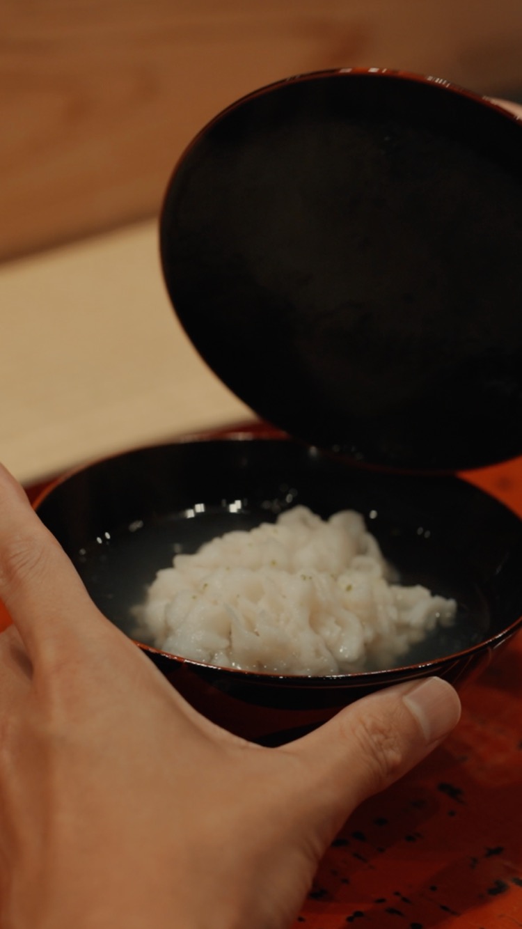 瀬戸内の魚の出汁で仕立てる椀物は、食後の軽さを残し、余韻を深くします。