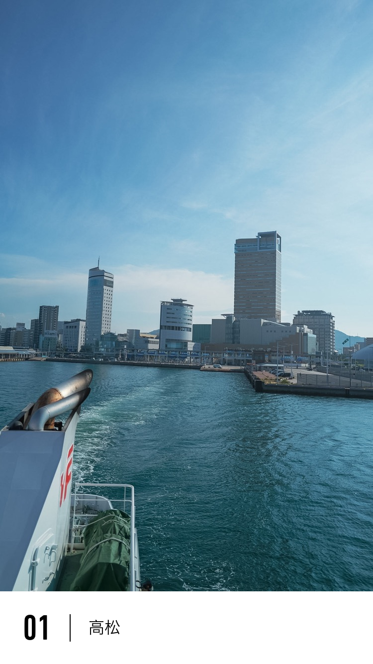 高松港,曾是往來瀨戶內海船隻的重要港口。在江戶時代(1603年-1868年),松平氏統治下的城下町開始繁榮發展,在此建造了面向大海、被護城河環繞的罕見的海濱城堡·玉藻城。近代,隨著鐵路的開通,高松港成為通往日本四國地區的繁華門戶。時至今日,港口周邊依然建有香川縣立競技場、大型購物中心以及酒店等設施,作為四國最大的港口城市接待眾多遊客。渡輪和高速船往返於小豆島和其他瀨戶內島嶼之間。近年來,來自國外的大型郵輪也紛紛在此停留,使這裡的景色更加多樣化。