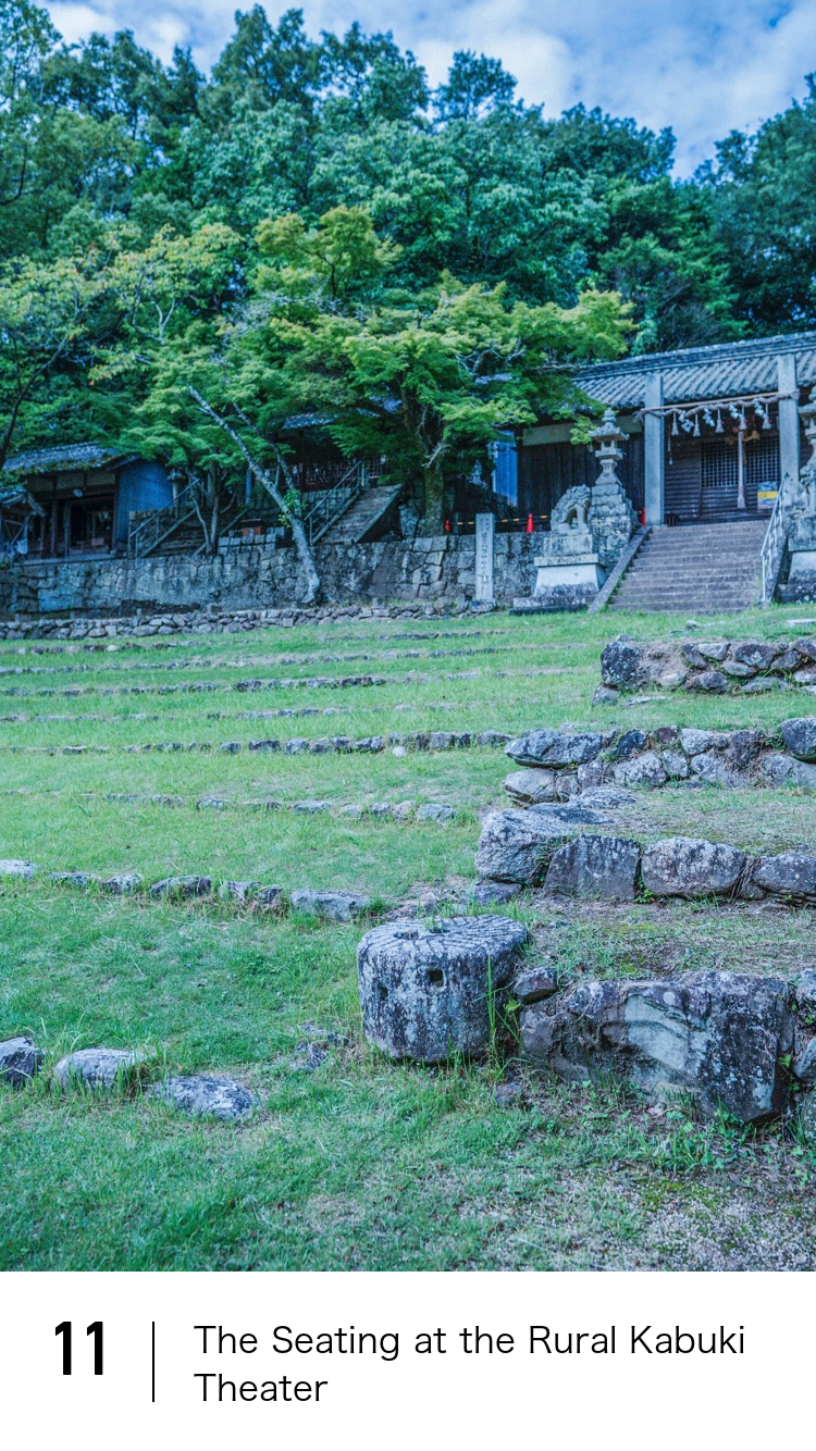 Next to this village is another rural kabuki theater preserved on the island. Nakayama is also home to an expanse of terraced rice fields known as “senmaida.” The people of the past had the wisdom to make the most of their limited land by building terraced rice paddies. The pride and skill put into these structures were supported by stone, just as the theater was. The rural kabuki theater is home to performances that offer prayers for abundance, and gratitude for successful harvests. Behind the scenes of such tradition are the lives of the islanders, which were supported by local stone.