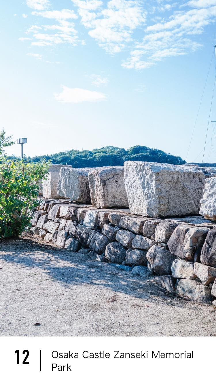 The stones that were excavated for use in the construction of Osaka Castle, but never climbed aboard ships to fulfill their destiny, continue to sit here at this park.