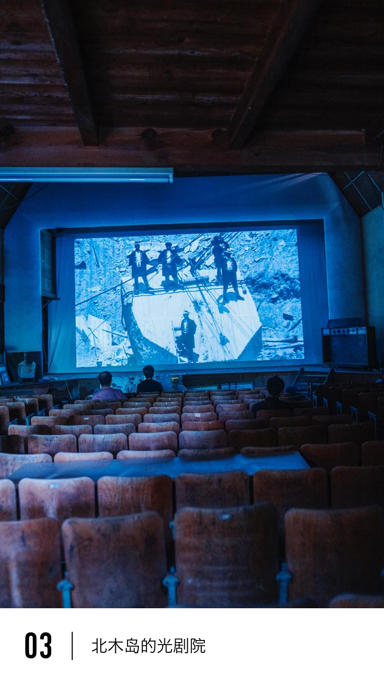 20世纪初,光剧院曾是北木岛上的四家电影院之一。在采石业鼎盛时期,超过一万人曾居住在岛上。剧院保留了当时原有的设备和放映机,营造出复古的氛围。即使在今天,这里仍然放映展现采石文化的影片,连接着过去与现在。