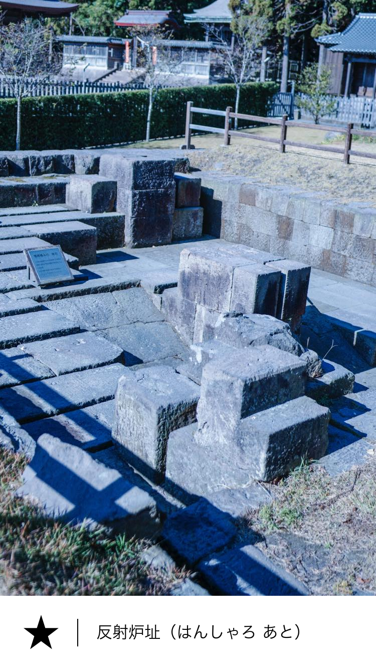 文久3年(1863)の薩英戦争後に反射炉は取り壊されましたが、残された石組は日本の近代化の歴史を物語る重要な遺構であるため、平成27年(2015)に世界文化遺産「明治日本の産業革命遺産」の構成資産として登録されています。