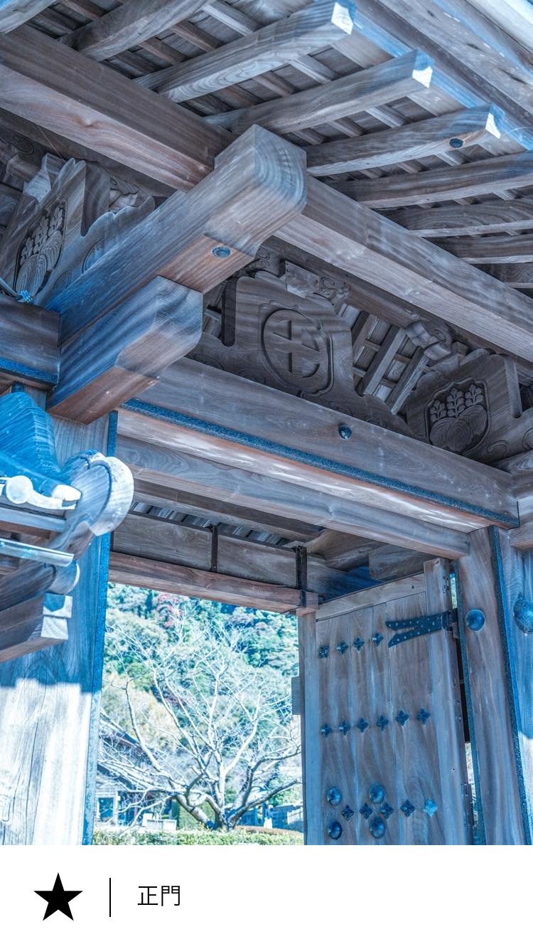 明治28年(1895)、仙巌園を本邸とした29代島津忠義の時代に建てられたものです。薬医門と呼ばれる公家や武家の屋敷の正門として用いられた格式高い様式になっており、建材には、仙巌園裏手の磯山から主採された大樹の樟(くす)が使用されています。