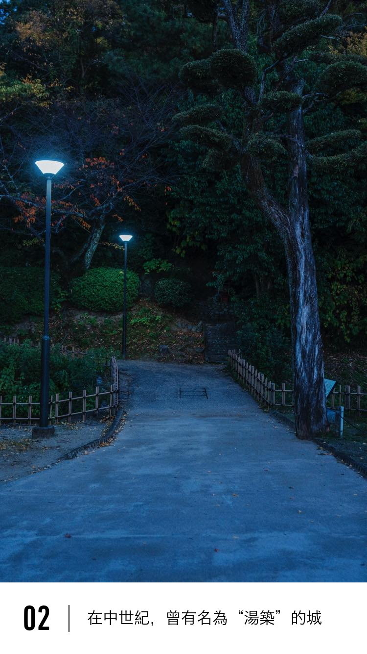 夜晚漫步在道後公園,透過樹影仿佛能感受到一個古老“山丘”的氣息。