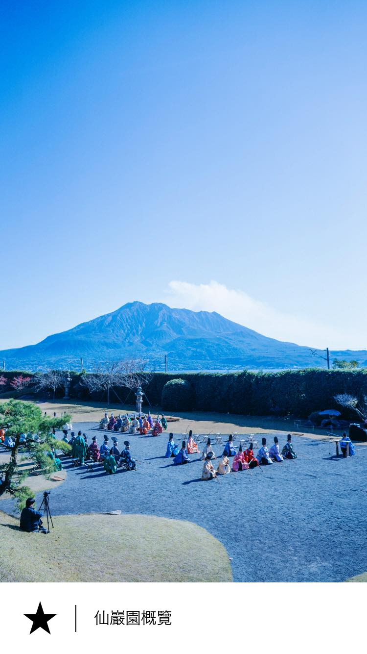 仙巖園,始建于江戶時代初期1658年(萬治元年)。由島津家第19代當主光久,作為薩摩藩島津家的別墅而建造。眼前的借景庭園,巧妙地融合了櫻島和錦江灣的壯麗自然風光。歷代當主都將此地視為心靈安寧之所,珍愛有加,並世代相傳。