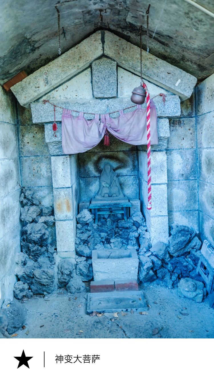 一路走来的这条路,叫做“瀑布道”。这条路的前方,是至今气势磅礴,水流不竭的“不动瀑布”。 这条路是明治时代,作为从主殿通往瀑布的参拜道,由当地居民整修而成。这是一段饱含着心愿的阶梯:“愿这里成为配得上祈愿之处的道路”。 沿途中供奉的,便是神变大菩萨。相传,他护佑人们腰腿康健,尤为庇佑步履稳健、行走有力,是守护参拜者一路前往瀑布、步步平安的菩萨。