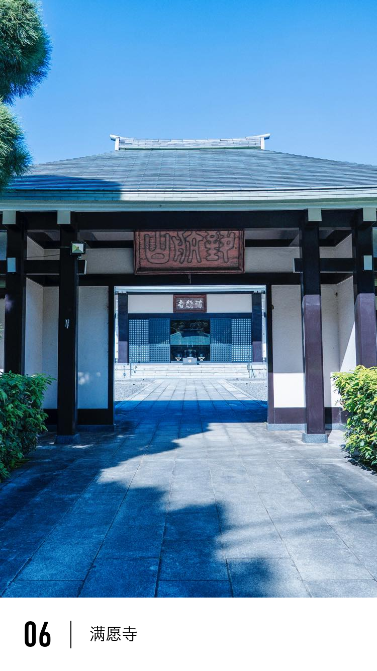 这种精神,静静流淌在寺院的匾额之上,也萦绕在院内的空气之中。山门上悬挂着,江户时代被誉为全能天才的细井广泽亲笔题写的匾额,正殿内则陈设着其子细井九皋所书的匾额。静下心来凝望匾额,仿佛仍能感受到当年满愿寺的气韵。